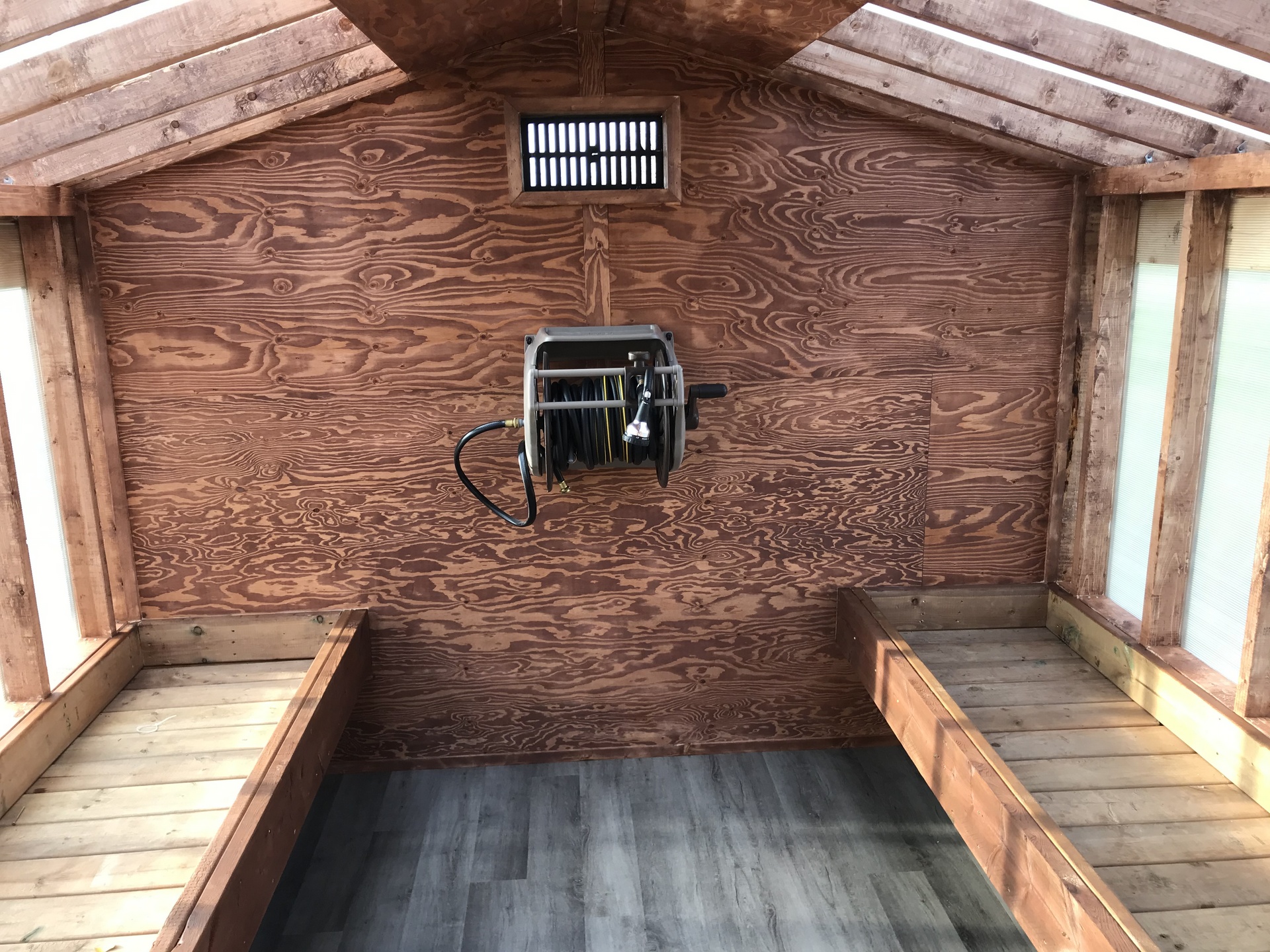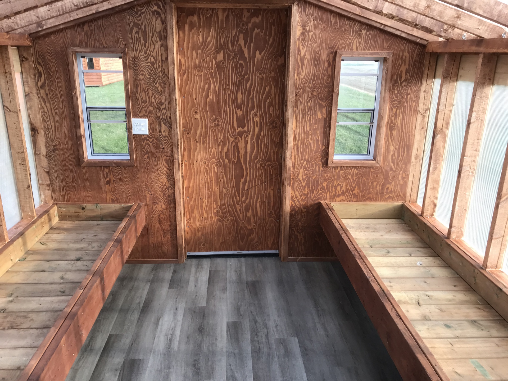 Two full-length growing benches and a wide center aisle give you room to work. Twin-wall panels flood the space with bright, even light, while operable windows and a gable vent keep air moving. Power and water hookups make the lights, heat mats, and irrigation plug-and-play. Durable, easy-clean flooring stands up to muddy boots and busy seasons—from seed starting to harvest.