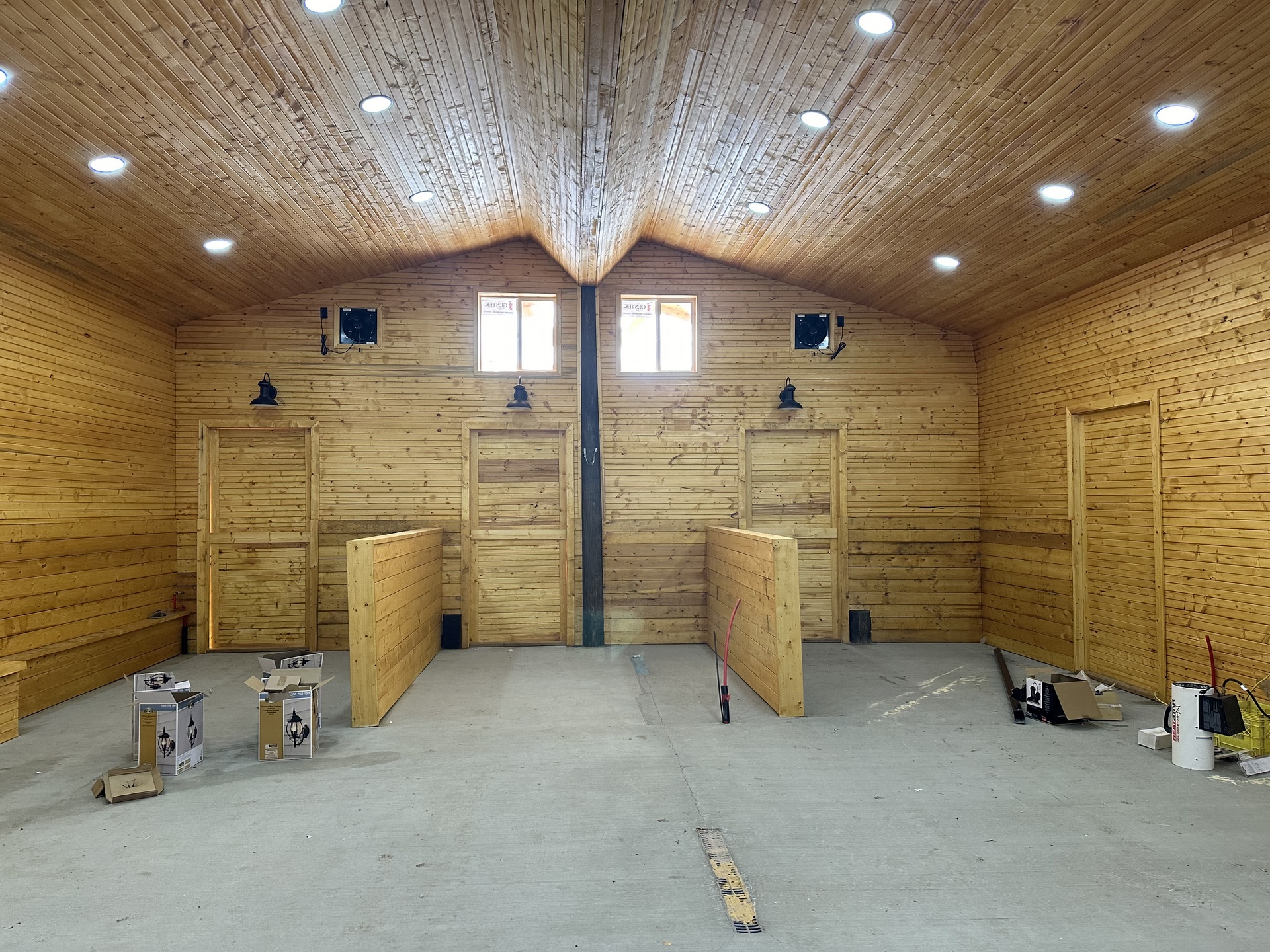 Bright, ventilated, and neatly divided stalls that give every horse the comfort and security of a private space.